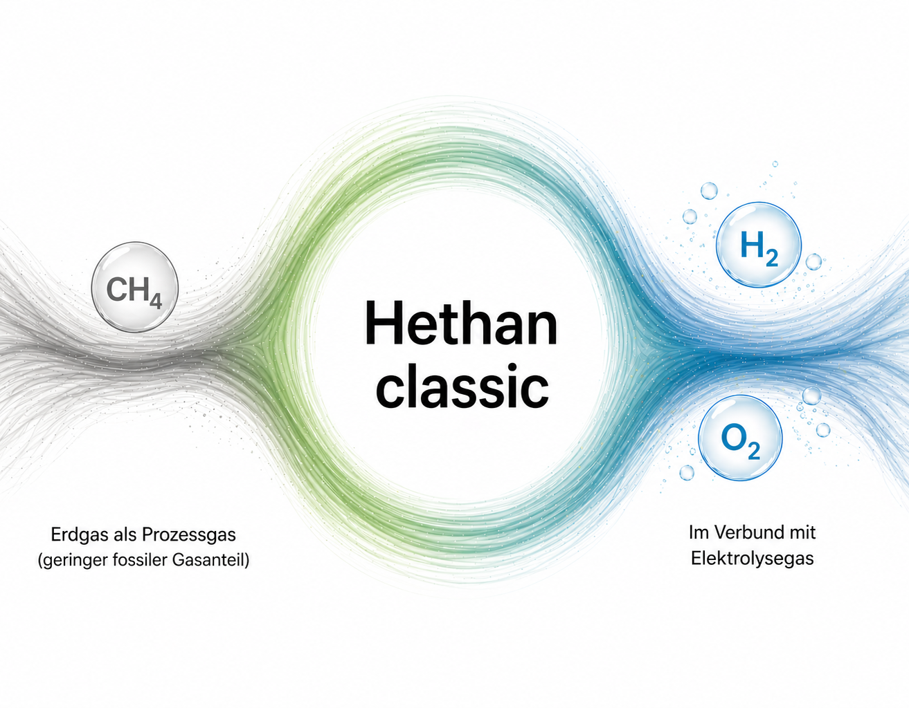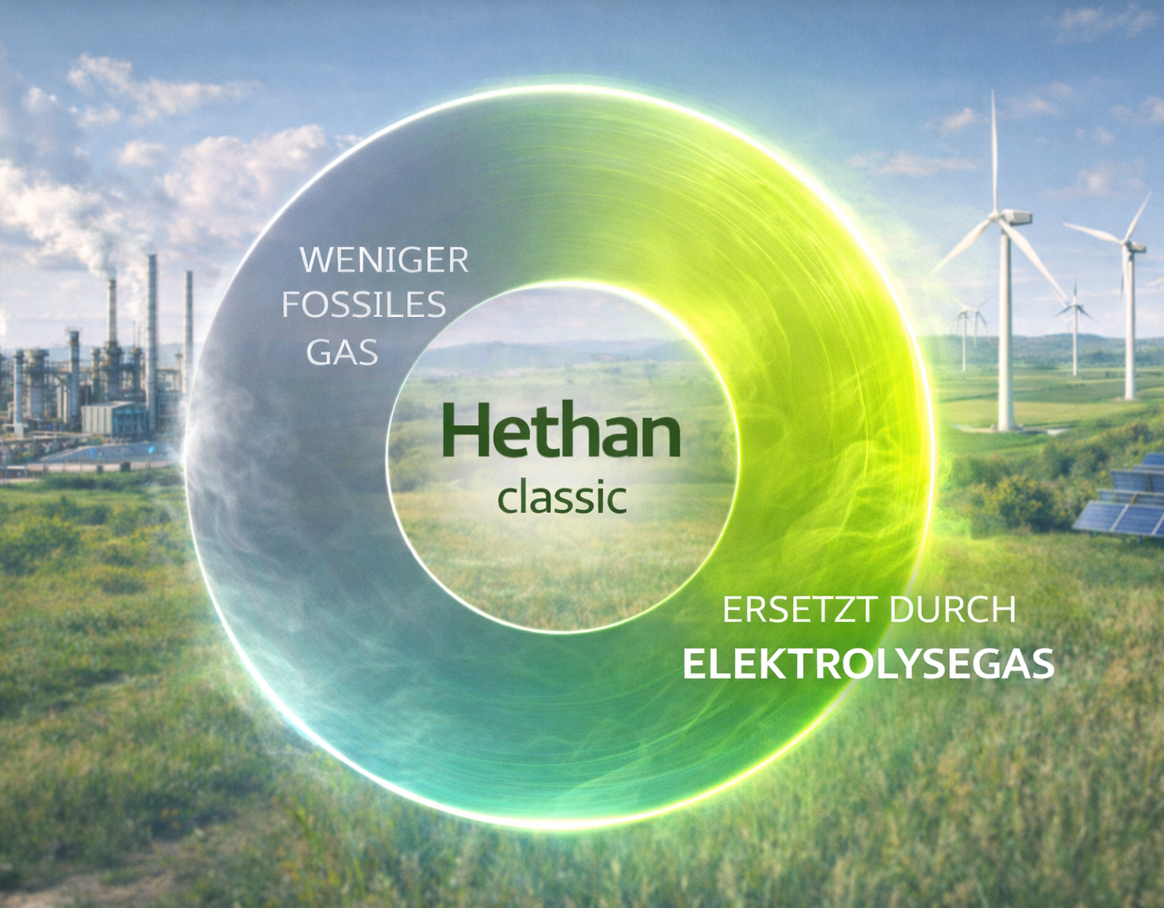 Hethan steht für innovative Hybridgase, effizient, klimafreundlich und bereit für die Zukunft.