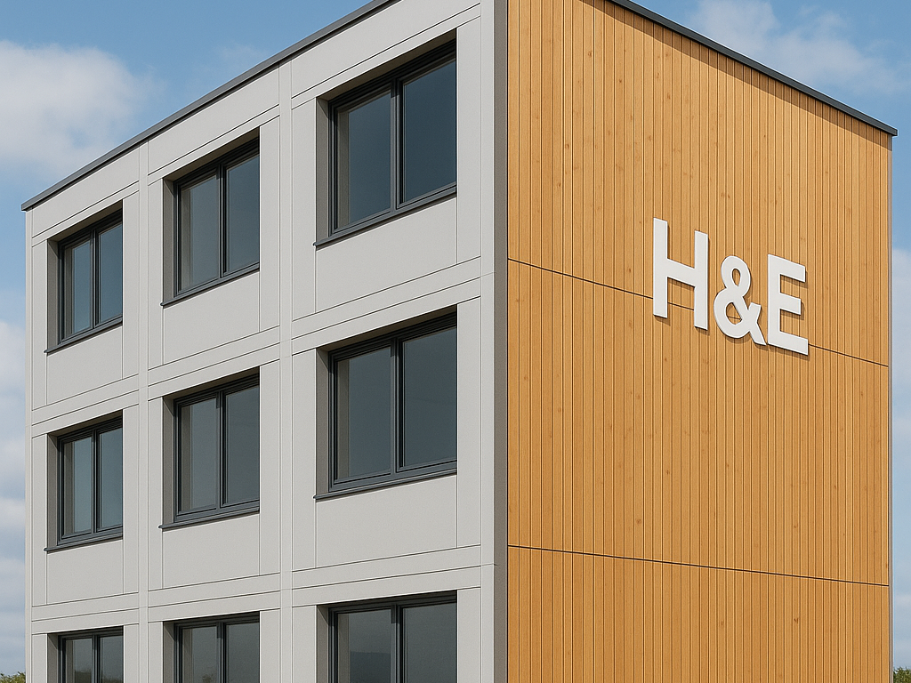 Die H&E GmbH setzt auf eine modulare, energieeffiziente Bauweise, die wirtschaftlich umsetzbar ist und sich an veränderte Anforderungen anpassen lässt. Unsere Gebäude werden ressourcenschonend errichtet, sind technisch klar strukturiert und von Anfang an auf niedrige Betriebs- und Energiekosten ausgelegt.
